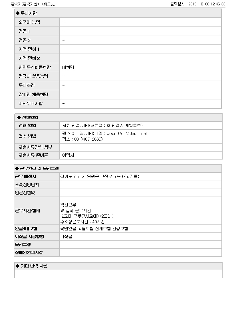 (워크넷)[안양]사옥 야간 보안대원 모집