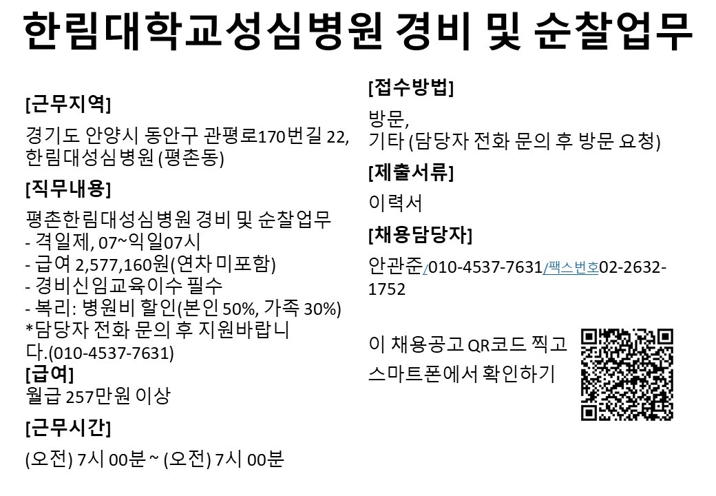 ※ 관심있는 구인정보에 대해 추가로 궁금한 사항은 해당회사 구인담당자에게 문의 바랍니다.
