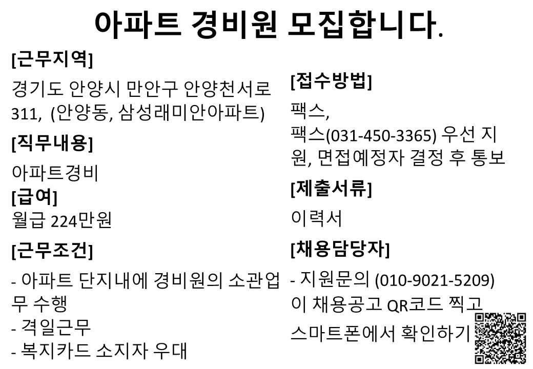 ※ 담당자 연락처(이름/전화번호/이메일주소)는 구직목적으로만 활용가능하며, 이 외의 목적으로 활용 시 처벌받을 수 있음을 알려드립니다.