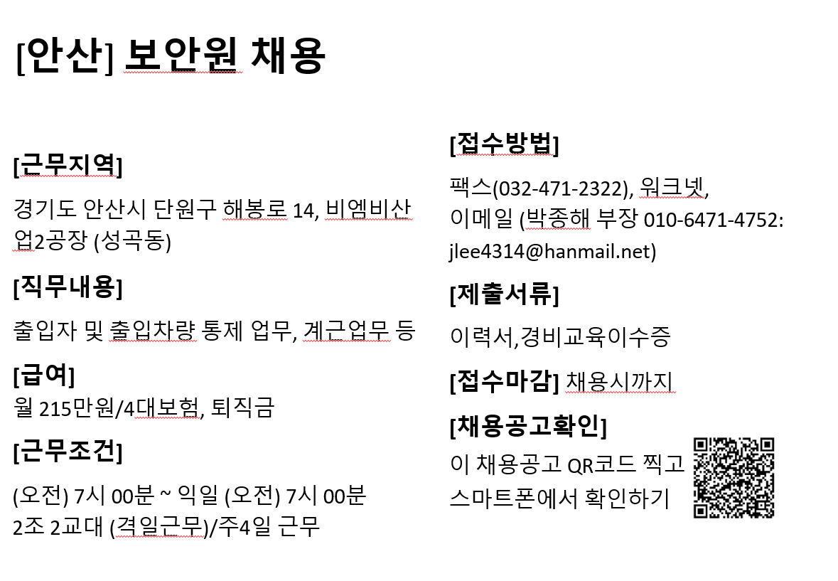 ※ 담당자 연락처(이름/전화번호/이메일주소)는 오로지 구직목적으로만 활용가능하며, 이 외의 목적으로 활용 하실 경우 처벌받을 수 있음을 알려드립니다.