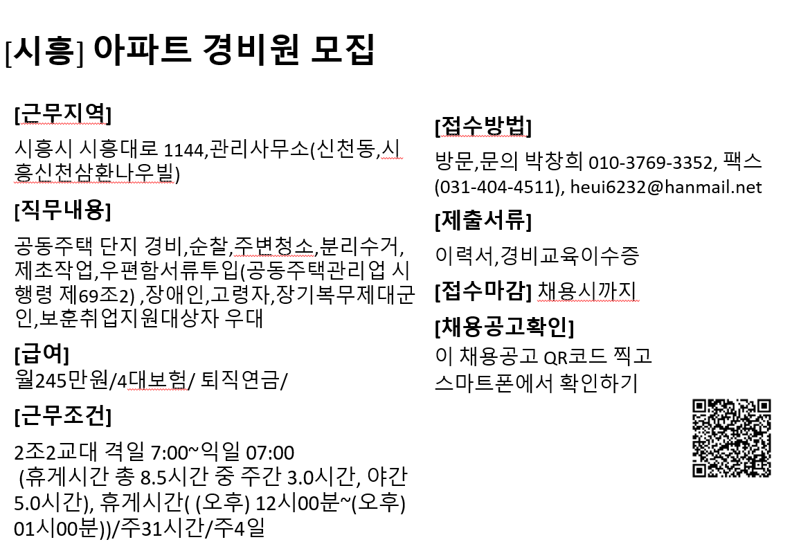 ※ 담당자 연락처(이름/전화번호/이메일주소)는 오로지 구직목적으로만 활용가능하며, 이 외의 목적으로 활용 하실 경우 처벌받을 수 있음을 알려드립니다.