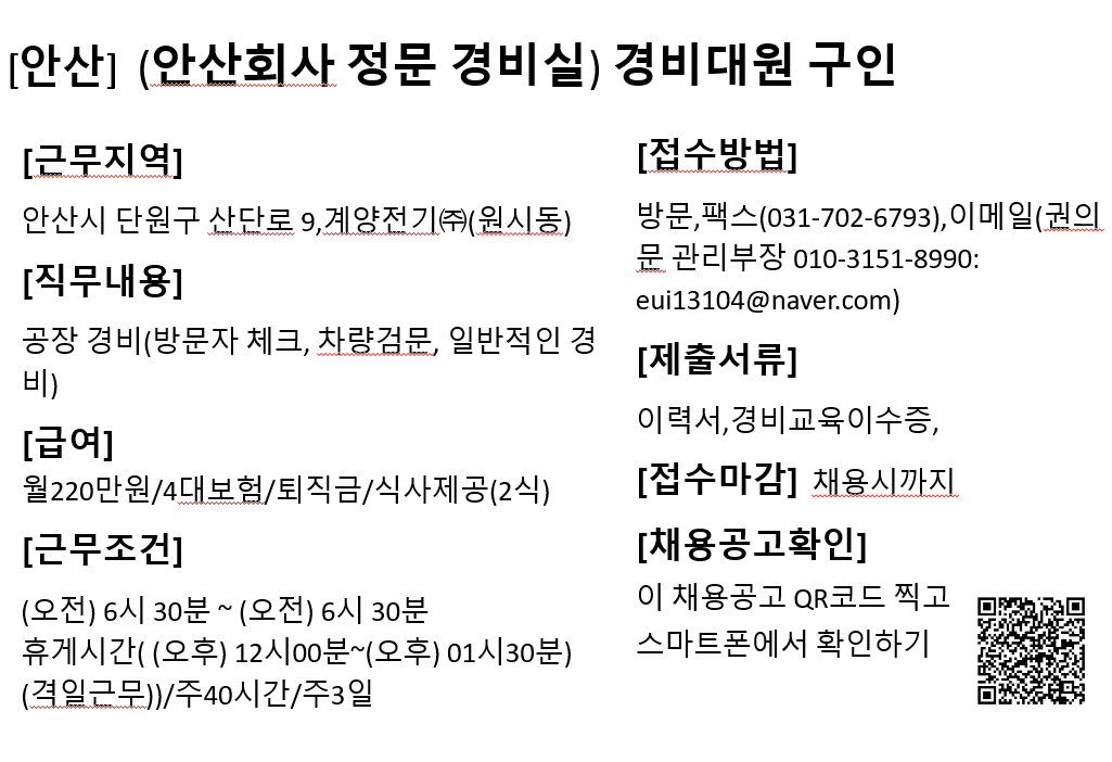 (워크넷) 2023/12/29 일자 경비,보안분야 구인공고 공유