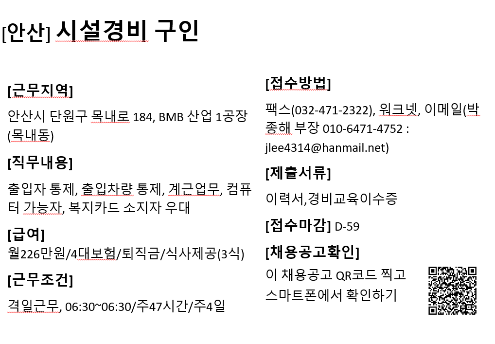 (워크넷) 2024/02/16 일자 경비, 보안 분야 구인공고 공유