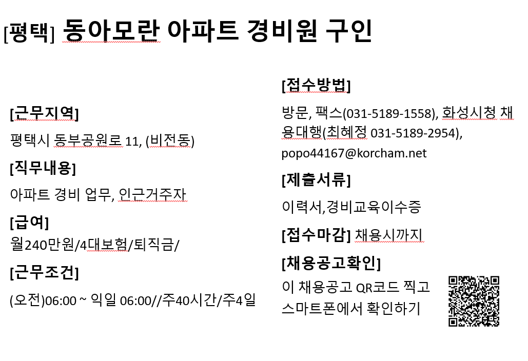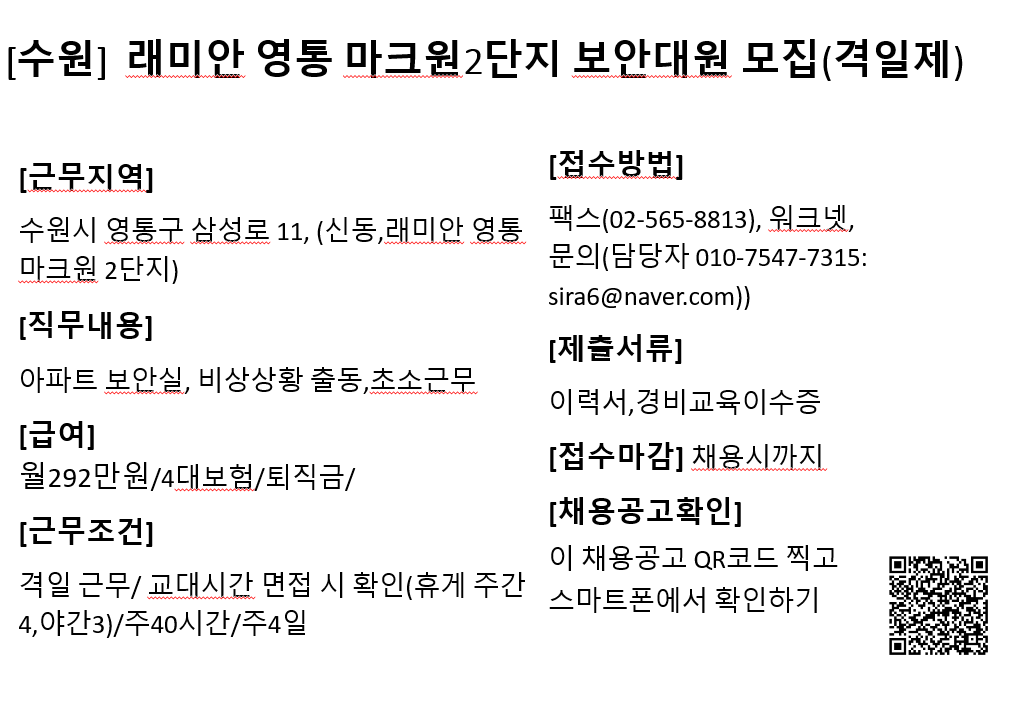 ※ 담당자 연락처(이름/전화번호/이메일주소)는 오로지 구직목적으로만 활용가능하며, 이 외의 목적으로 활용 하실 경우 처벌받을 수 있음을 알려드립니다.