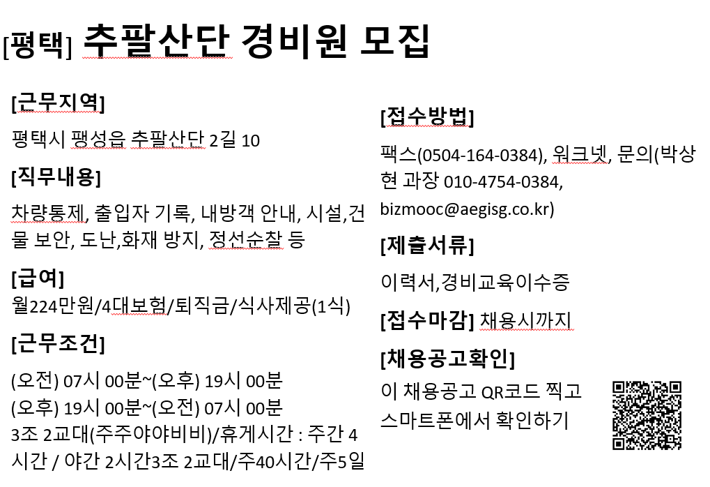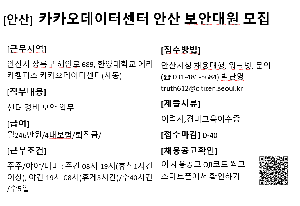 ※ 담당자 연락처(이름/전화번호/이메일주소)는 오로지 구직목적으로만 활용가능하며, 이 외의 목적으로 활용 하실 경우 처벌받을 수 있음을 알려드립니다.