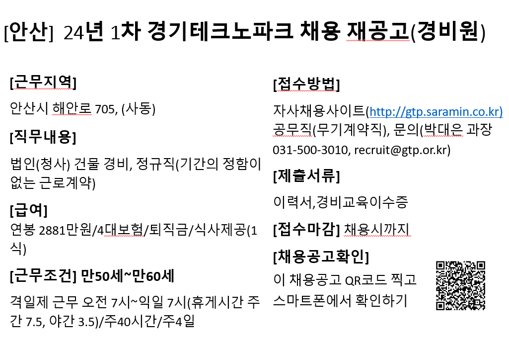※ 담당자 연락처(이름/전화번호/이메일주소)는 오로지 구직목적으로만 활용가능하며, 이 외의 목적으로 활용 하실 경우 처벌받을 수 있음을 알려드립니다.