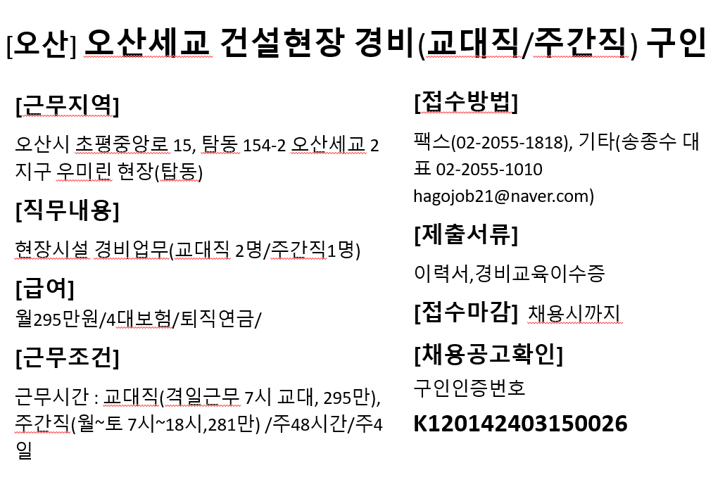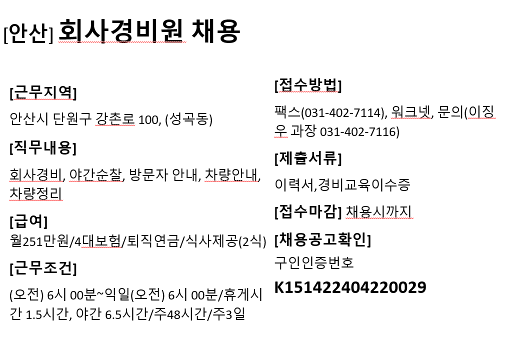 (워크넷) 2024/04/30 일자 경비,보안 분야 구인공고 공유