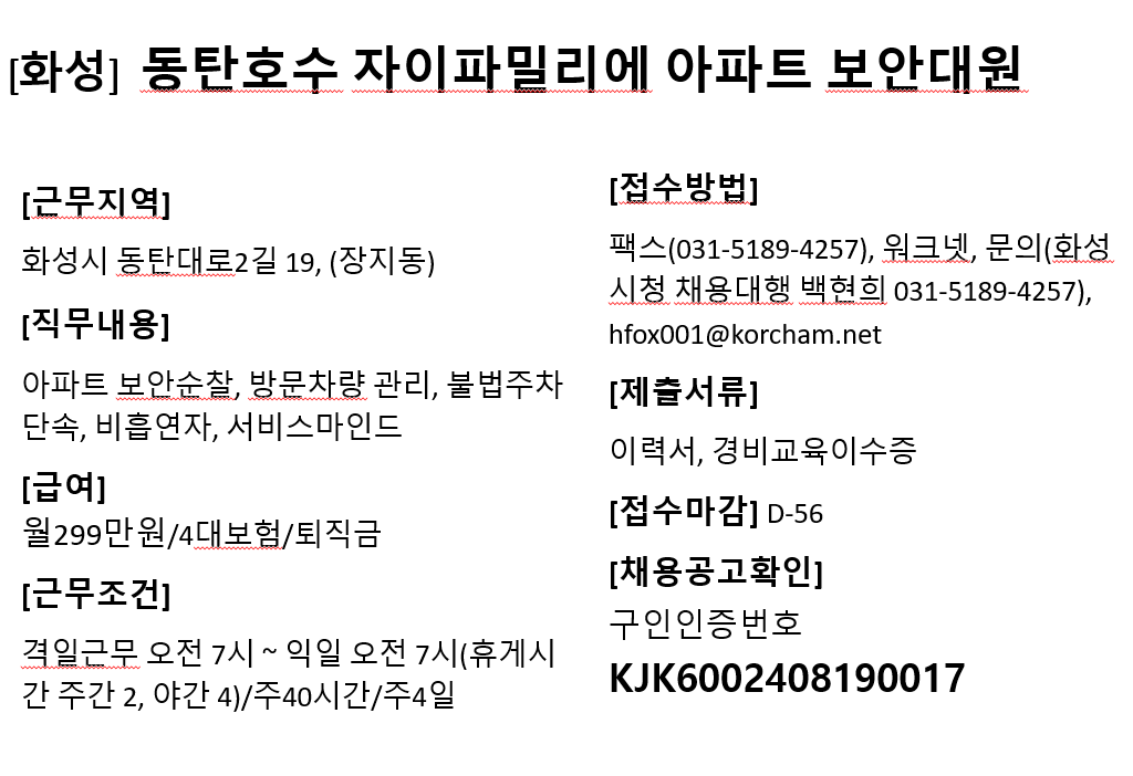 ※ 담당자 연락처(이름/전화번호/이메일주소)는 오로지 구직목적으로만 활용가능하며, 이 외의 목적으로 활용 하실 경우 처벌받을 수 있음을 알려드립니다.