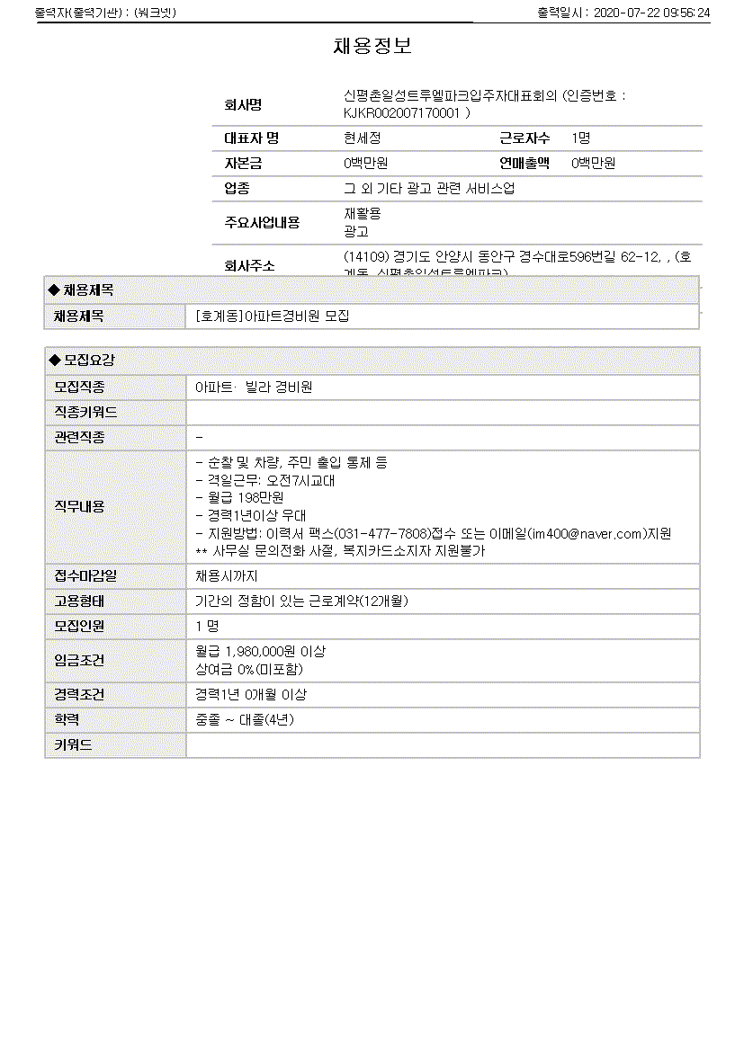 (워크넷)[광교] 호반가든하임 아파트 보안 채용