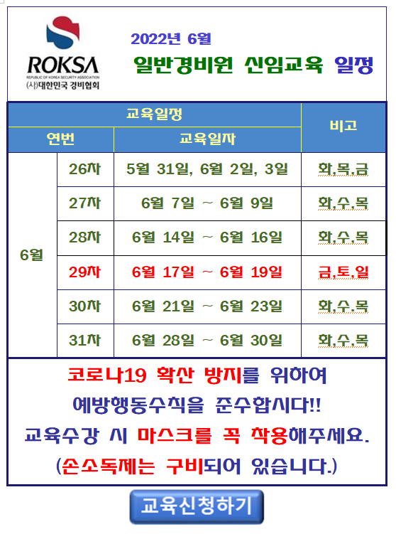 모든 과목 수료 하신 후 일반경비원 신임교육 이수증은 바로 발급 드립니다.